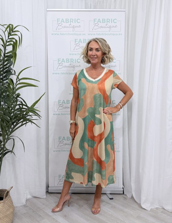 Green multi coloured kaftan dress