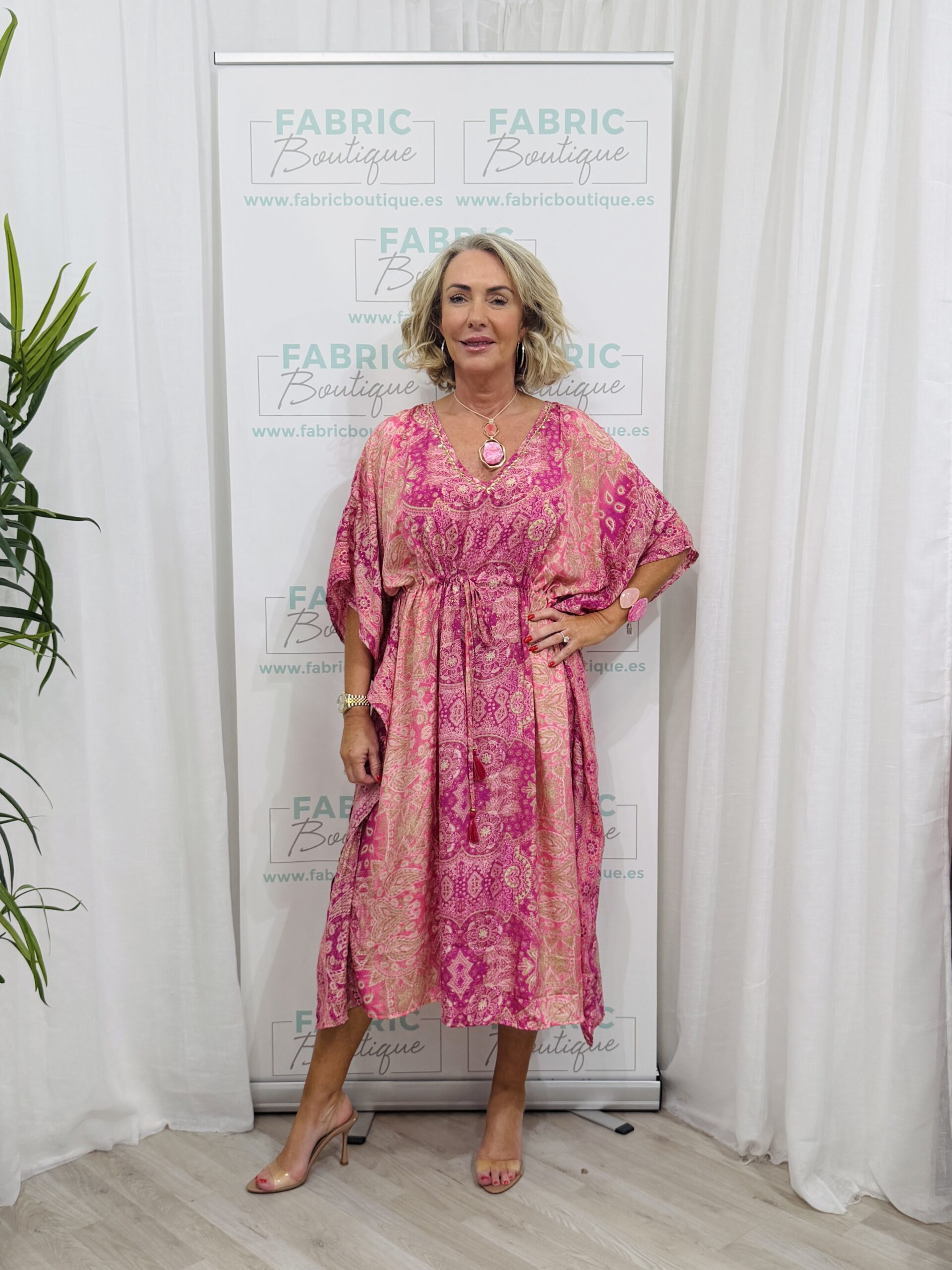 Pink paisley kaftan dress